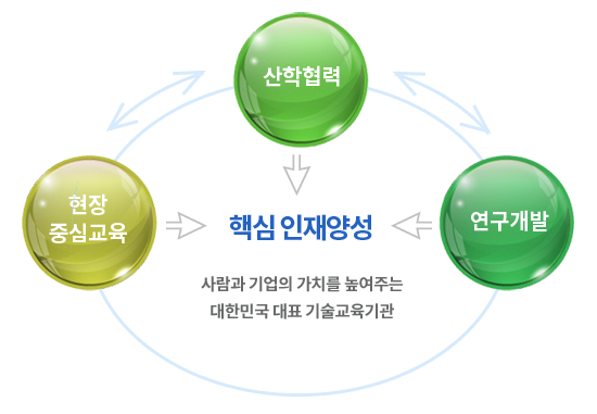 "세계 최고의 기술력과 경쟁력으로 글로벌 시대를 선도하는 핵심산업기능인력 양성의 메카"